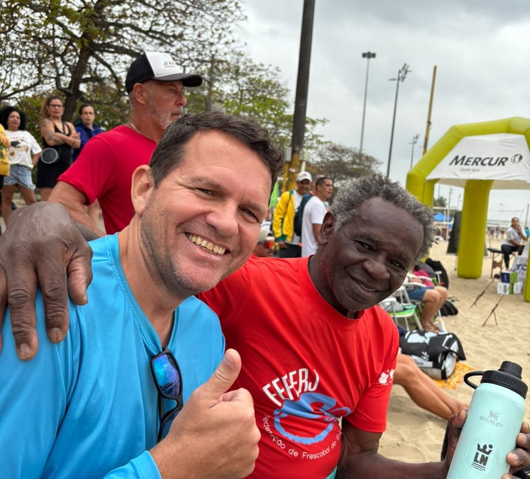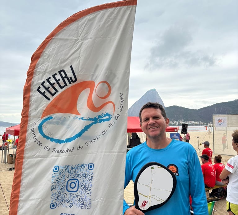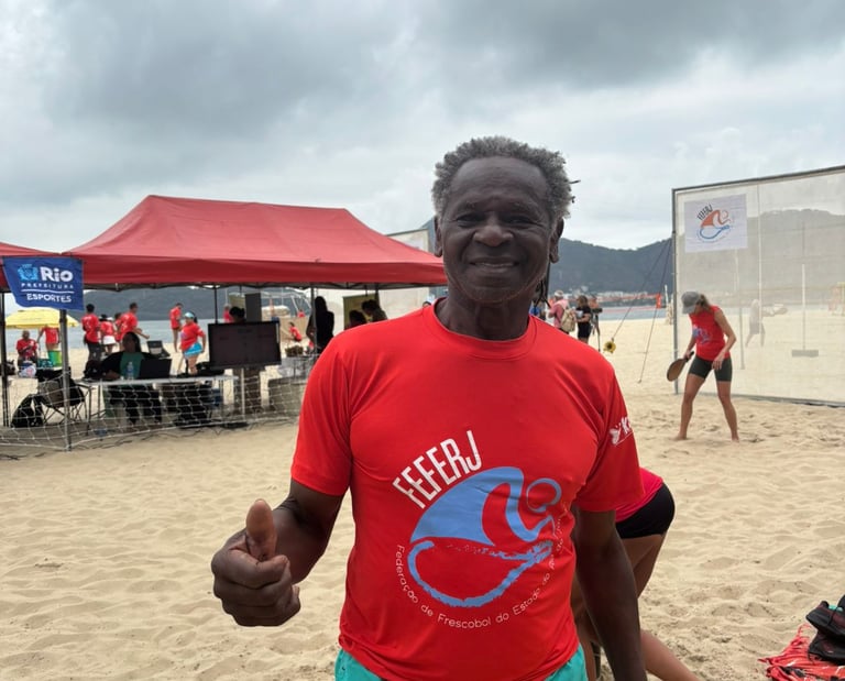 Luiz Negão, um apaixonado pelo esporte ao ar livre, iniciou sua trajetória com o Frescobol na praia do Leblon, Rio de Janeiro. Desde jovem, ele se encantava com as ondas do mar e a diversão que o frescobol proporcionava a amigos e familiares. O seu amor pelo jogo não era apenas pela atividade física, mas pela conexão multicultural que ele via entre as pessoas. Anos atrás, ele decidiu transformar essa paixão em um estilo de vida. Com um sorriso contagiante e um espírito acolhedor, Luiz começou a organizar pequenas competições e encontros, promovendo o frescobol como uma forma de lazer e socialização. Hoje, Luiz Negão é uma figura reconhecida no cenário do frescobol, viajando pelo Brasil e pelo mundo, sempre com sua raquete em mãos. Ele se tornou um defensor incansável do esporte, inspirando novas gerações a se juntarem a esse lifestyle. Ao lado de amigos e admiradores, ele continua a espalhar a alegria do frescobol, acreditando que cada partida é uma oportunidade de criar memórias duradouras e amizades.