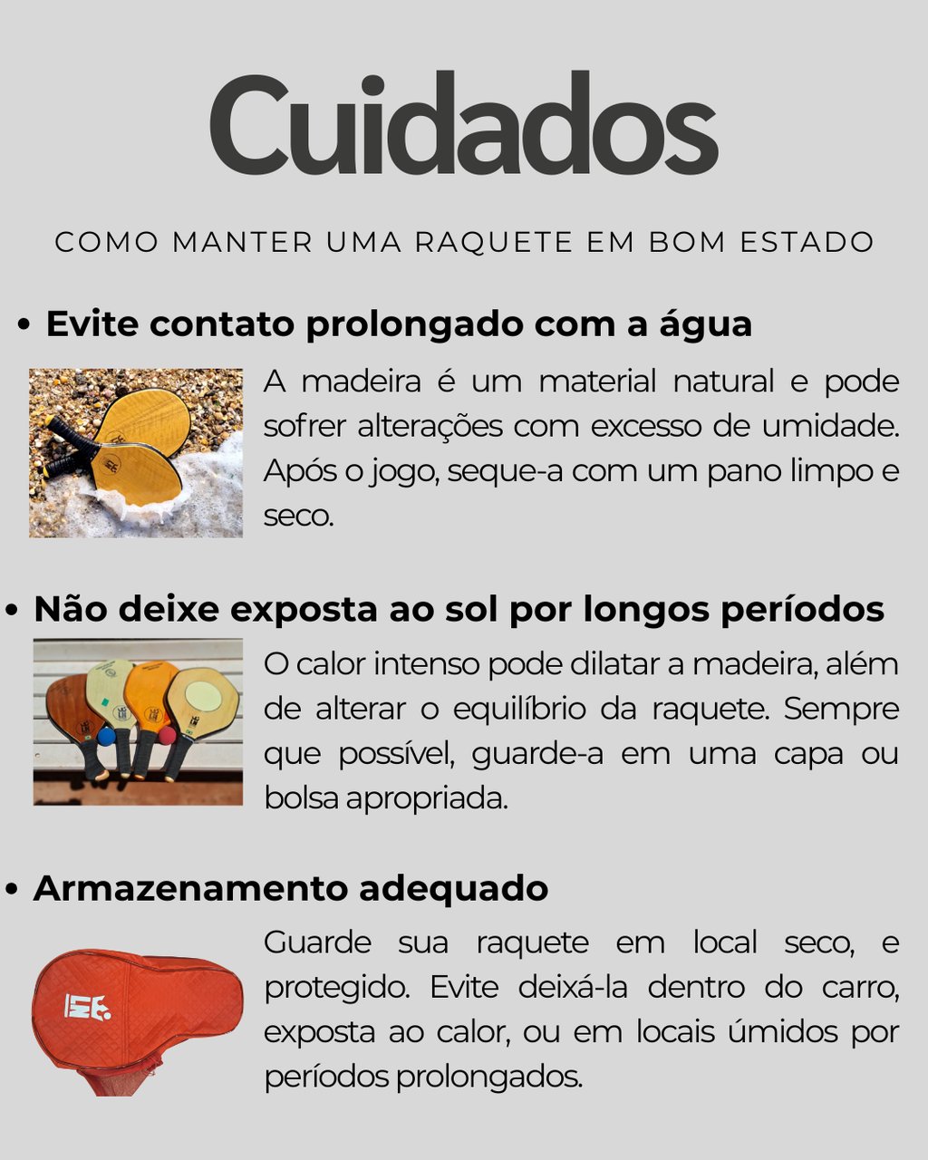 Nossas raquetes são de alta qualidade, artesanais, feitas pelo embaixador do Frescobol, testadas para garantir desempenho e durabilidade em cada partida.